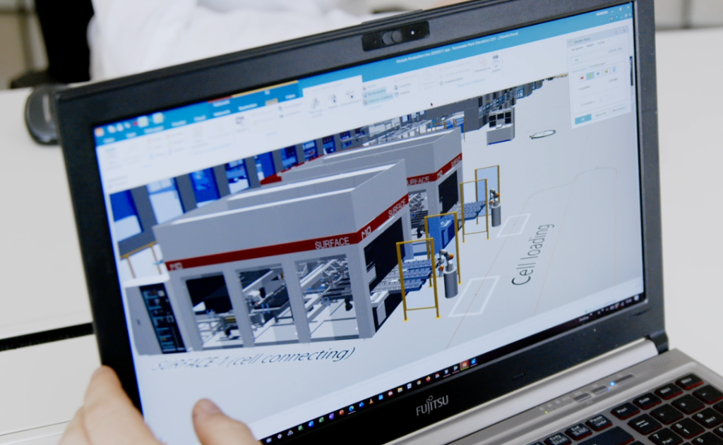 La simulación desempeña un papel fundamental en el proceso de desarrollo de M10. Utilizando el software Plant Simulation para fabricación fotovoltaica, la empresa pudo modelar con precisión sus objetivos de producir 12.010 tiras por hora. Este enfoque basado en la simulación les permitió optimizar las líneas de producción, agilizar los procesos, reducir las distancias recorridas por los empleados, minimizar los tiempos de inactividad de las máquinas, acortar los tiempos de preparación y optimizar el consumo de energía. Gracias a la colaboración con Siemens, M10 logró sus objetivos y obtuvo un ahorro de tiempo significativo de más del 30% durante toda la duración del proyecto.