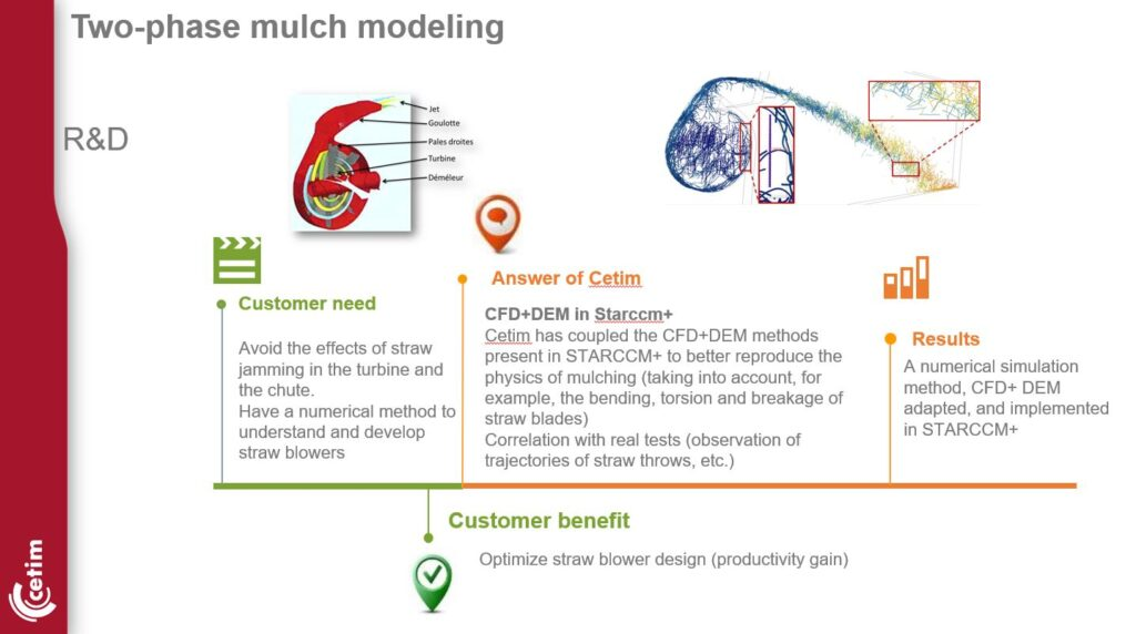 El CETIM ofrece la oportunidad de tender puentes entre los agentes de la industria y el mundo académico, basándose en casos reales procedentes de la industria. Estos grupos de trabajo permiten el desarrollo de sólidas competencias para la empresa que se beneficia de la experiencia en simulación del CETIM. Estos proyectos transversales reúnen hasta 80 representantes de la industria, que luego se dividen en subgrupos para trabajar sobre temas determinados. Uno de los proyectos codirigidos entre el CETIM, la industria y el mundo académico se centra en la simulación y el acoplamiento.