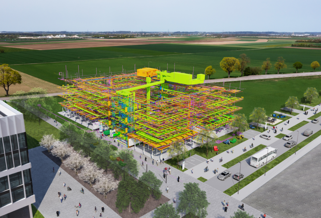 Generalmente, el diseño BIM y el diseño mecánico CAD son procesos separados manejados por equipos distintos. En Siemens Real Estate, los arquitectos son responsables de la estructura del edificio, mientras que los ingenieros planifican la ubicación de los equipos en la fábrica.
